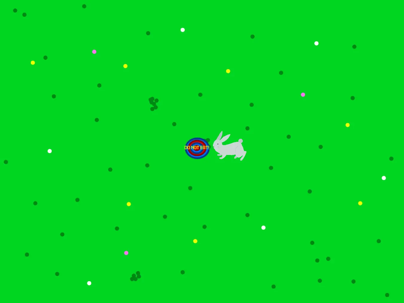 Dylan has presented us with a game where we see a bunny running around trying to eat the normal eggs while avoiding green eggs! There’s a twist though, all the eggs try to run away!